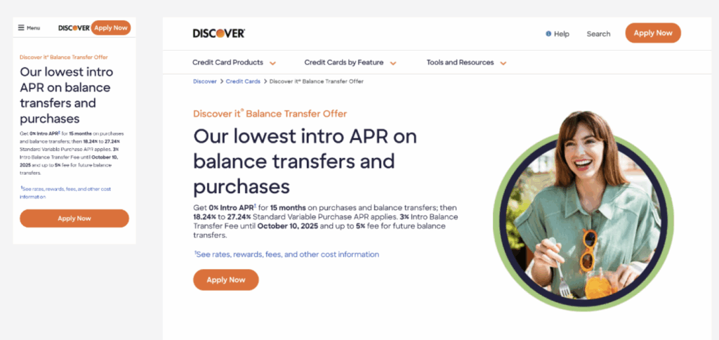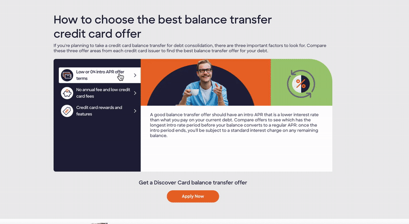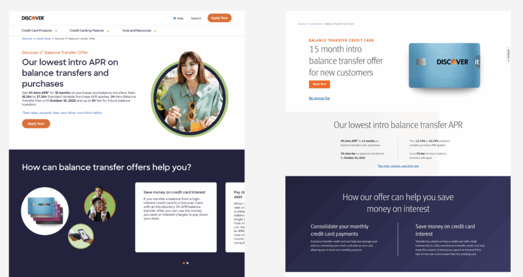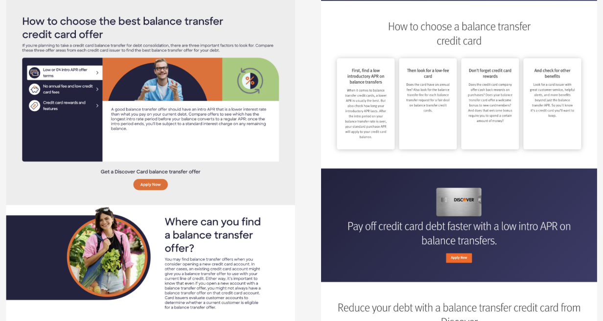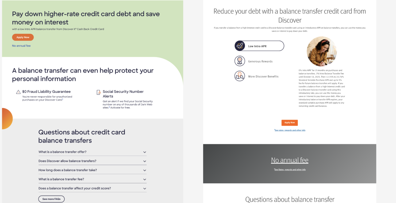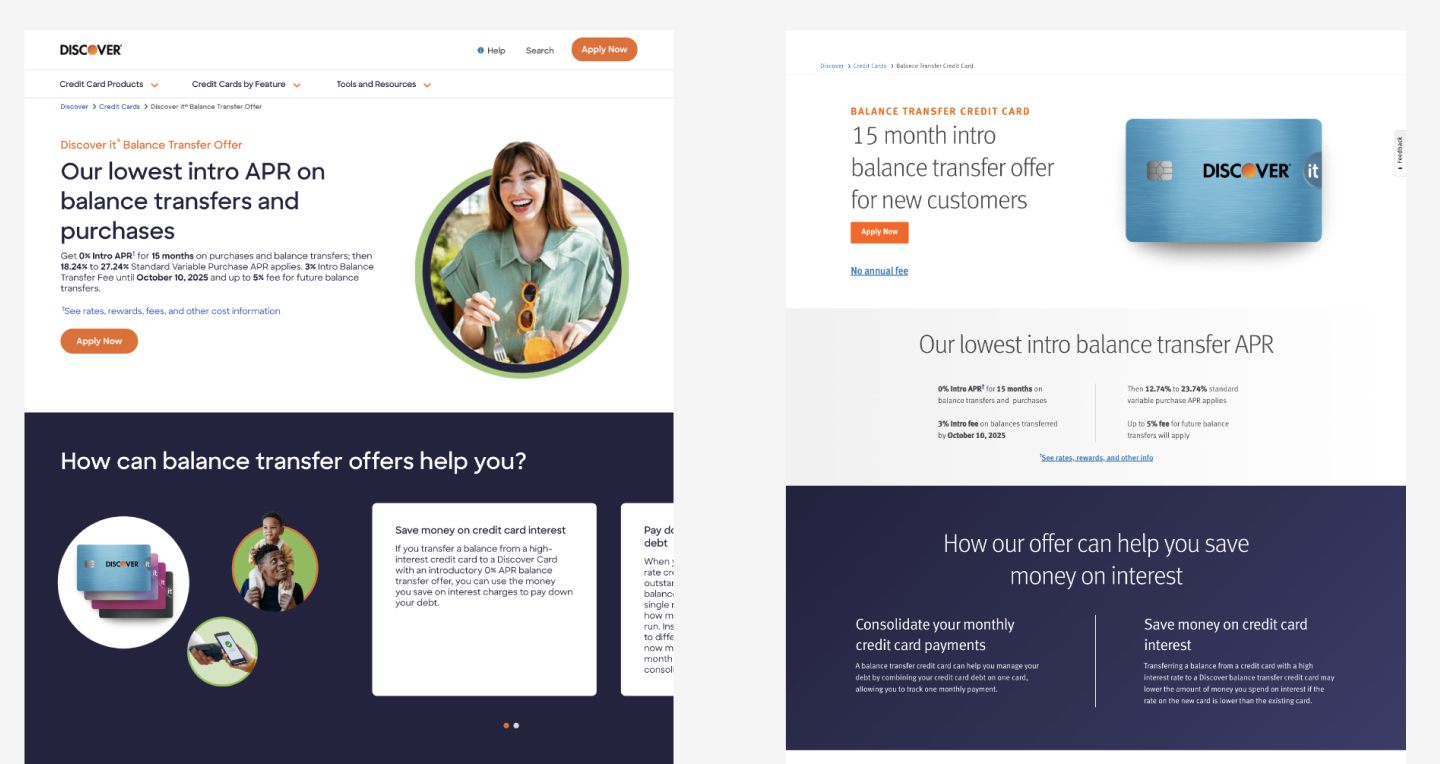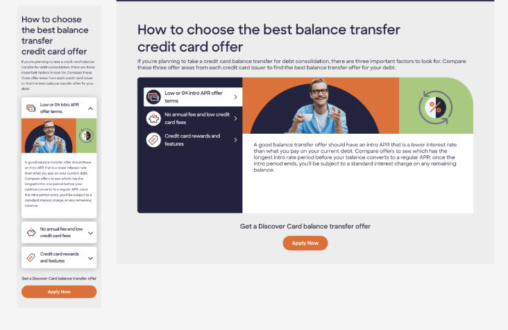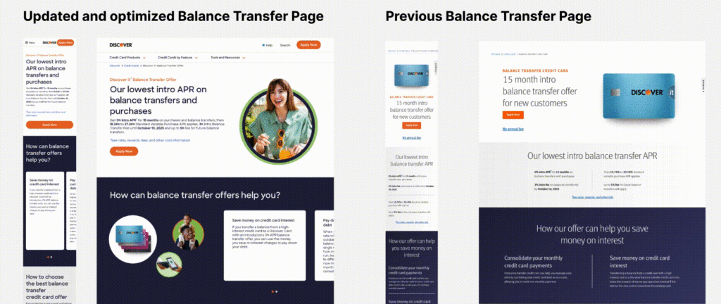 Working cross-functionally and using UX principles to optimize Discover's Balance Transfer Credit Cards webpage